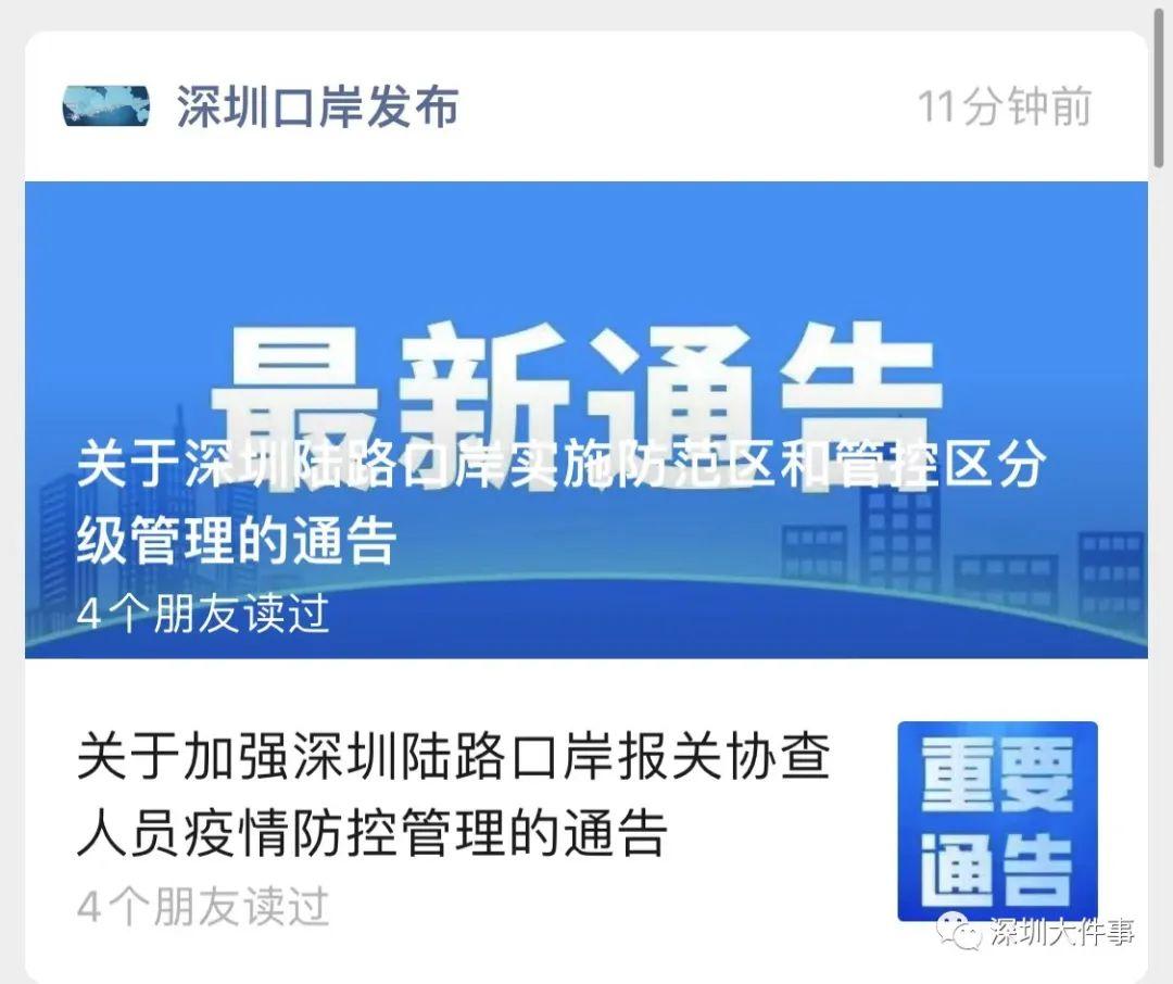 关于深圳陆路口岸实施防范区和管控区分级管理的通告