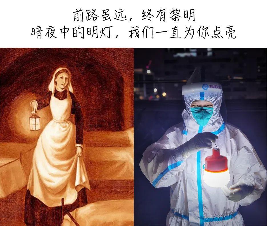 注:左图为提灯女神南丁格尔,右图由罗湖医院集团罗湖妇幼主管护师李琼拍摄