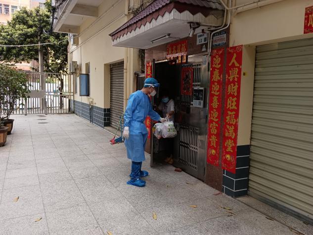面对严峻的疫情环境,志愿者们毫不退缩,立即按照工作部署,协助社区防疫人员开展维护秩序、信息核查、龙屋新村的物资发放等服务工作,默默守护群众身体健康和生命安全。一时间,“蓝衣服”、“白衣战士”成为最美丽的风景线。