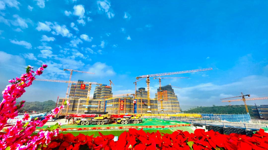 开工以来,坪山区多措并举、超常规投入,组建以“大国工匠”陆建新为核心的管理团队,调集精兵强将和优势资源。项目高效率、高起点、高标准建设,65天进入主体施工阶段,155天实现首栋教学楼封顶,160天实现首个校区教学楼封顶,计划于2022年7月30日完工并交付使用,9月1日投入使用,迎接首批学子入学。
