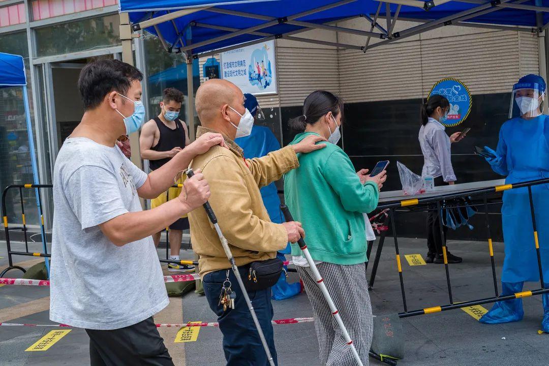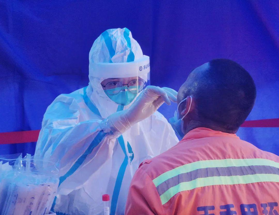 工地的工人主动参加核酸检测,做到生产、防疫两不误。
