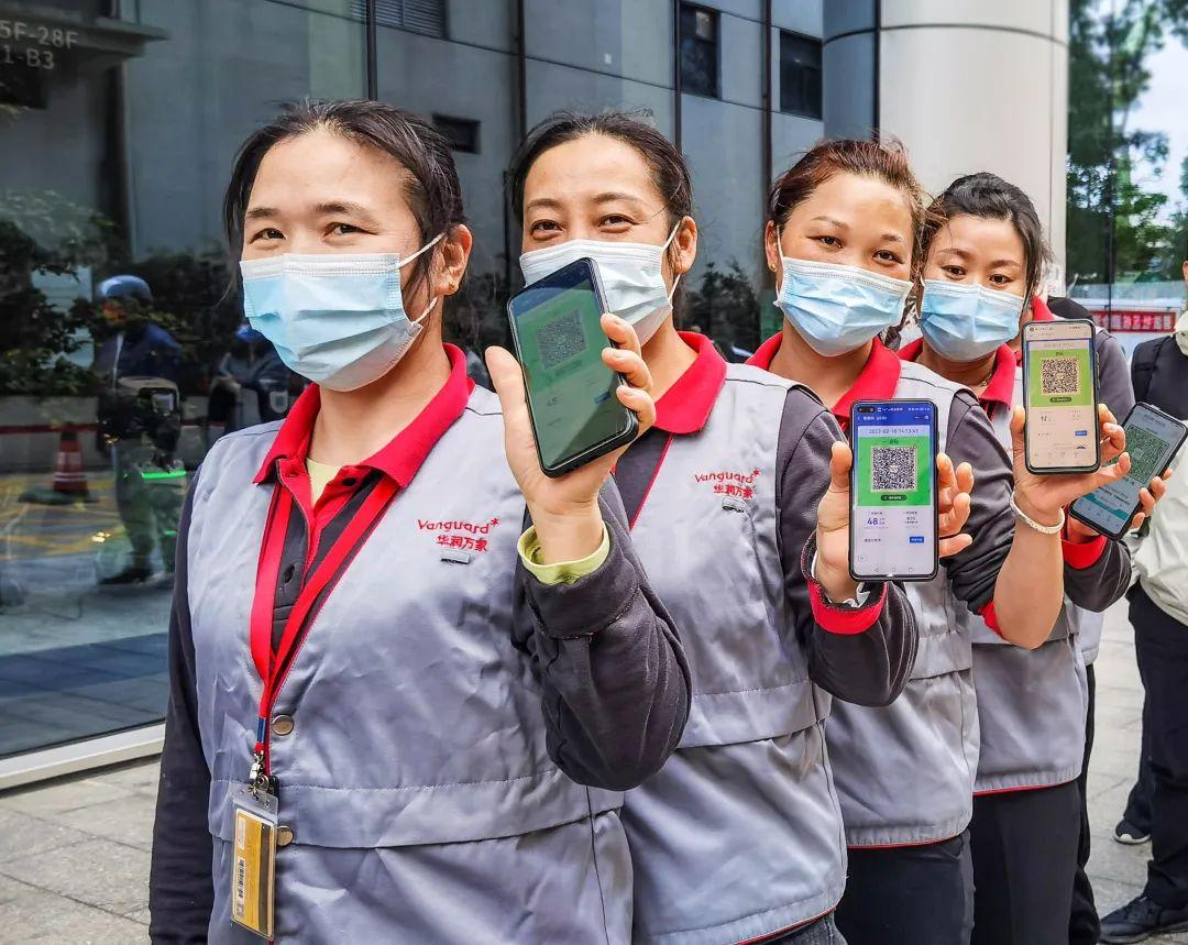 商场的员工严格遵守防疫规定,戴口罩、备绿码,共筑防疫长城。