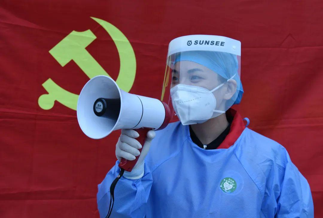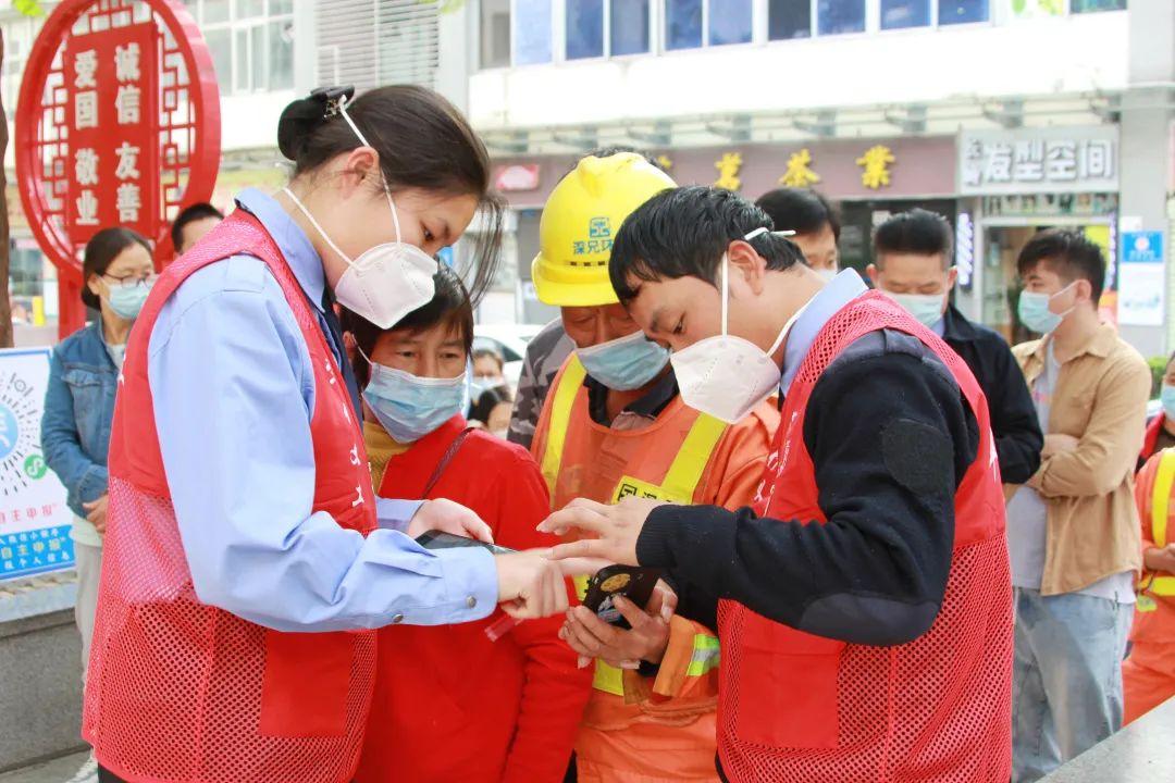 鹿丹村社区党委书记、巾帼志愿者陈珊珊在向群众宣传防疫知识。