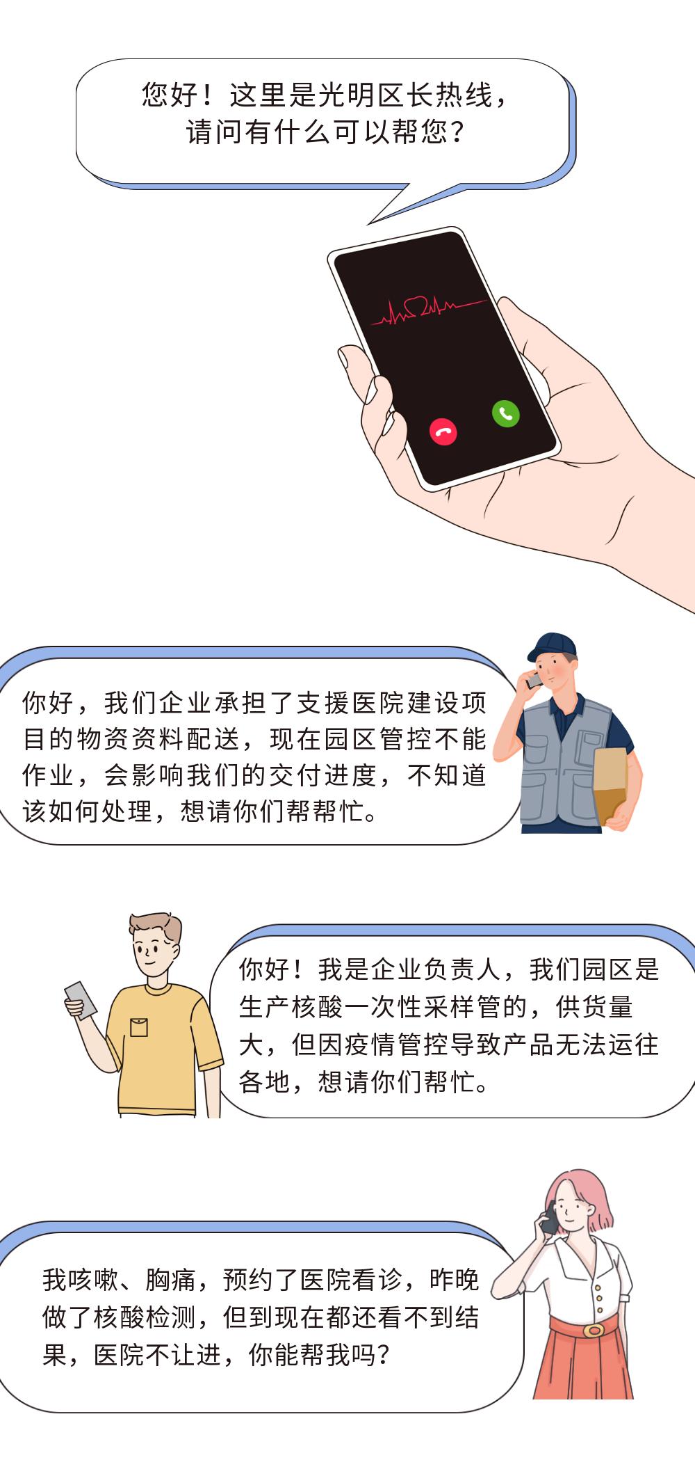 为发挥暖心服务热线的矩阵效应,光明对外公开区、街道、社区三级防疫暖心服务热线43条,安排值班人员252人,全天候、及时、便捷地做好有关疫情防控政策措施和群众关心的疫情防控相关问题咨询服务。