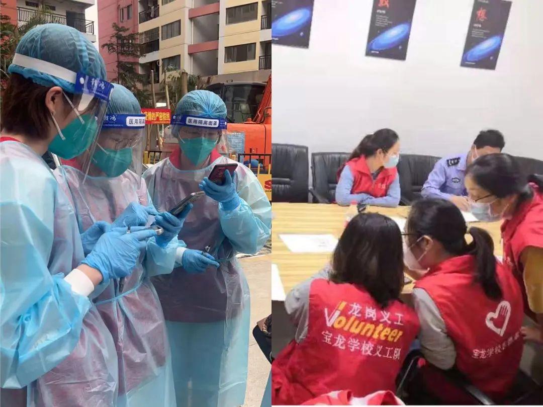 宝龙学校教师一边做好在线教学,一边在上级统一调度部署下,前往社区支援防疫工作,截至3月19日,共派出7批90余人次。他们和清晨的阳光、傍晚的余晖、深夜的星光一起,见证着这座城市无处不在的抗疫精神!