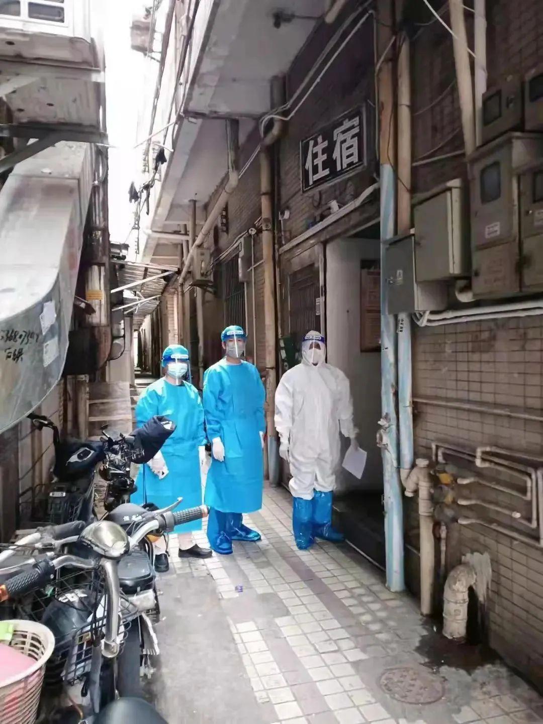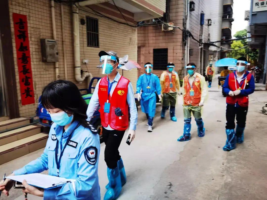 3月16日,龙岗中学14名教工志愿者参加南联社区的“扫楼”工作,挨家挨户入户登记信息,工作直至深夜,此项工作他们持续了好几次。