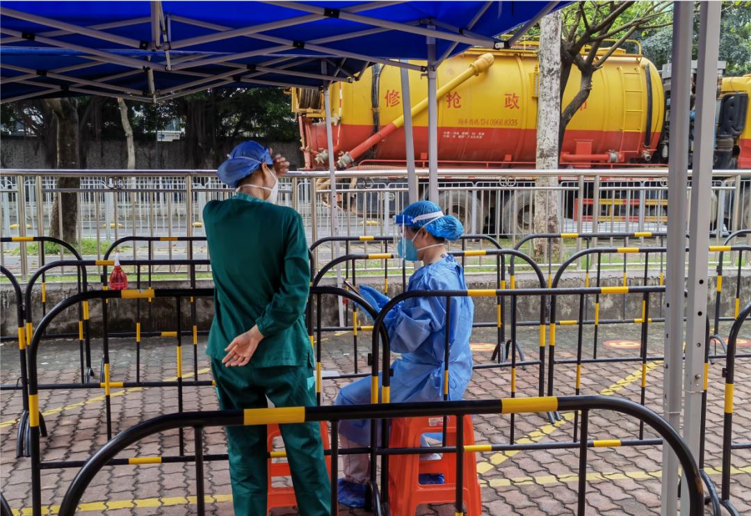 为减少人员流动,让在校教职工足不出户就能全员参与核酸检测,龙岗职业技术学校4名职工积极响应集令,紧急集结成第一检测组,奔赴龙城街道辖区15所学校。