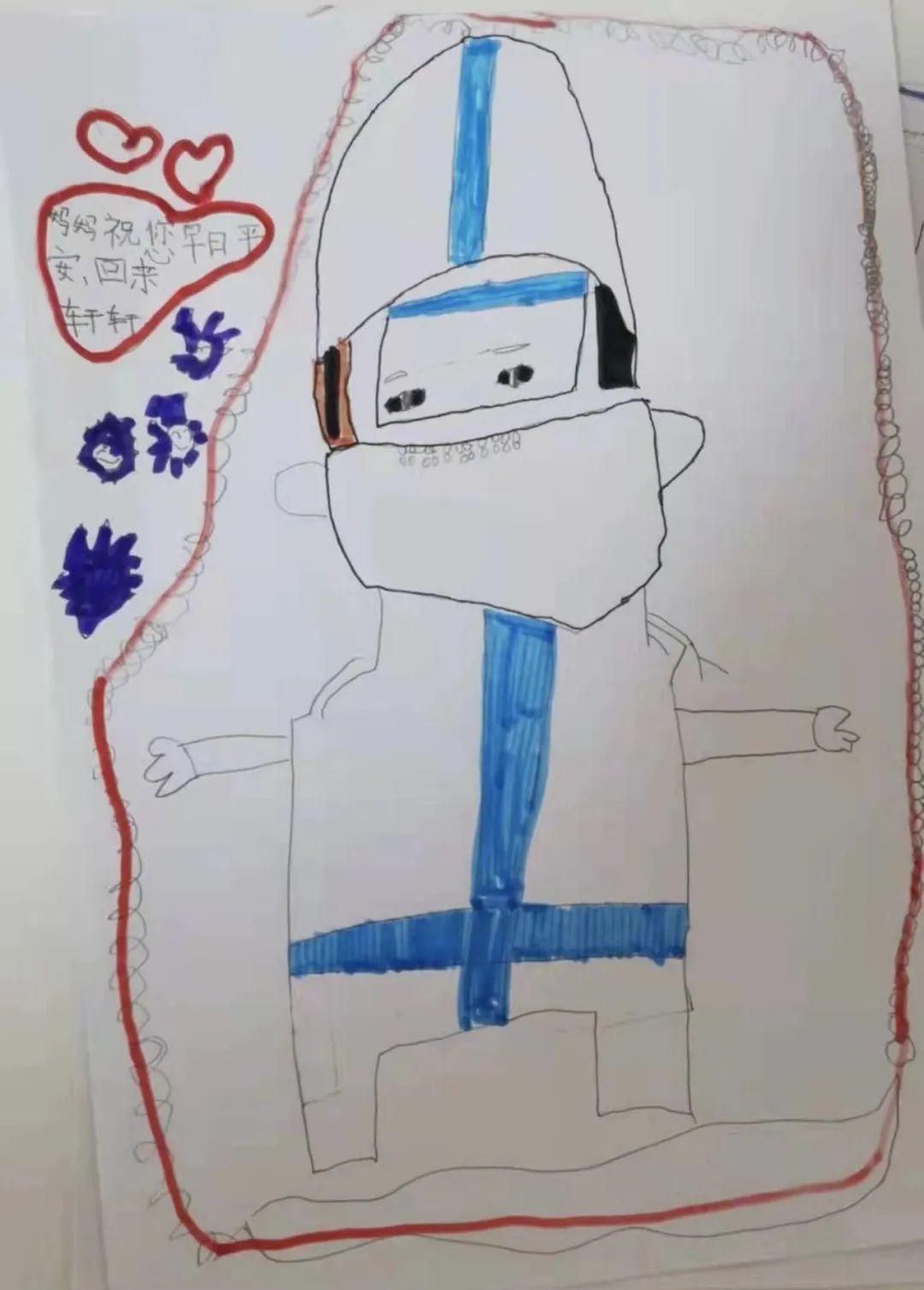 因为不能回家,张薇与儿子约定,每晚睡前,儿子把想听的绘本故事拍照发给她,她就会读故事哄他入睡。“可能因为我一直给他读绘本,尤其是2020年后,我就开始讲与病毒和生命有关的故事,所以他很能理解我,还会鼓励我。他还给我画了张画,说他送了我一个防护罩,在防护服外面保护我,把新冠病毒都挡在外面。”