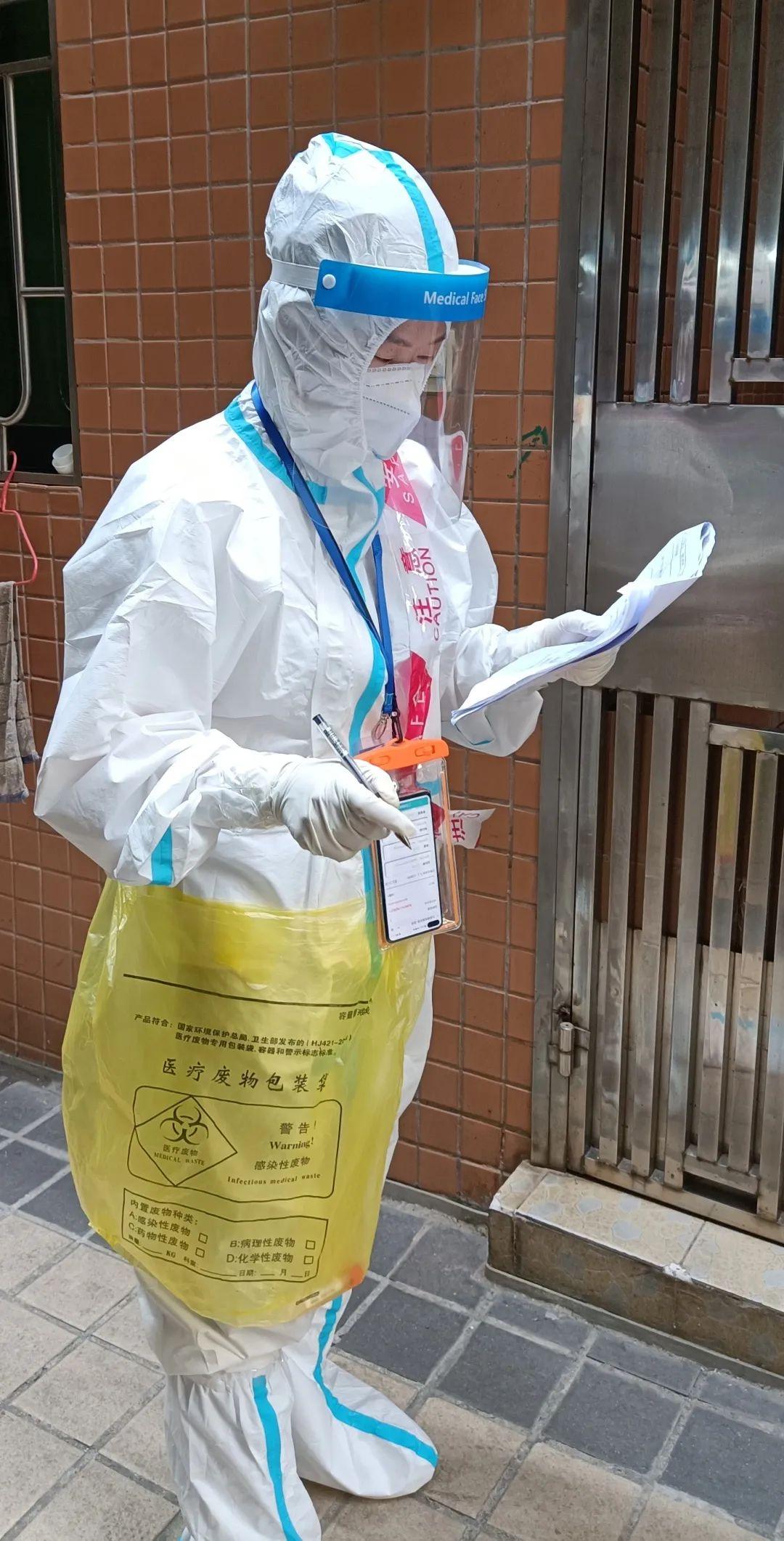 3月12日,是她第一次参与上门核酸,也是第一次身穿大白进行长时间的爬楼工作。4个小时下来,闷热和脱水让她出现了轻微的中暑症状,只能在同事下楼补充物资的间隙在楼梯间进行简单的休息。突然房门打开,有个小男孩端了杯温水送到她面前。