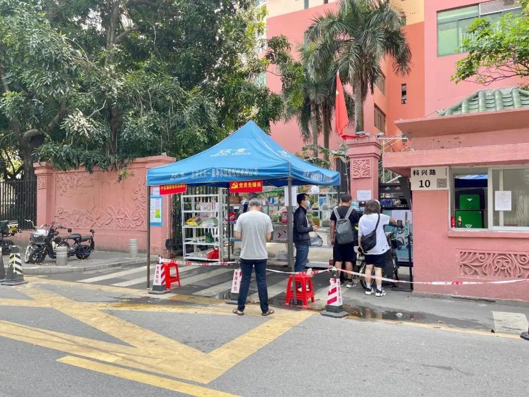 零点刚过,在南山区光前村村口,一些居民正带着行囊排队入村,骑手们也陆续下班返村,多名保安正在有序引导居民扫码进入,严格落实测温、亮码、戴口罩等防控措施。