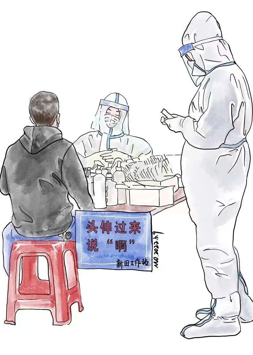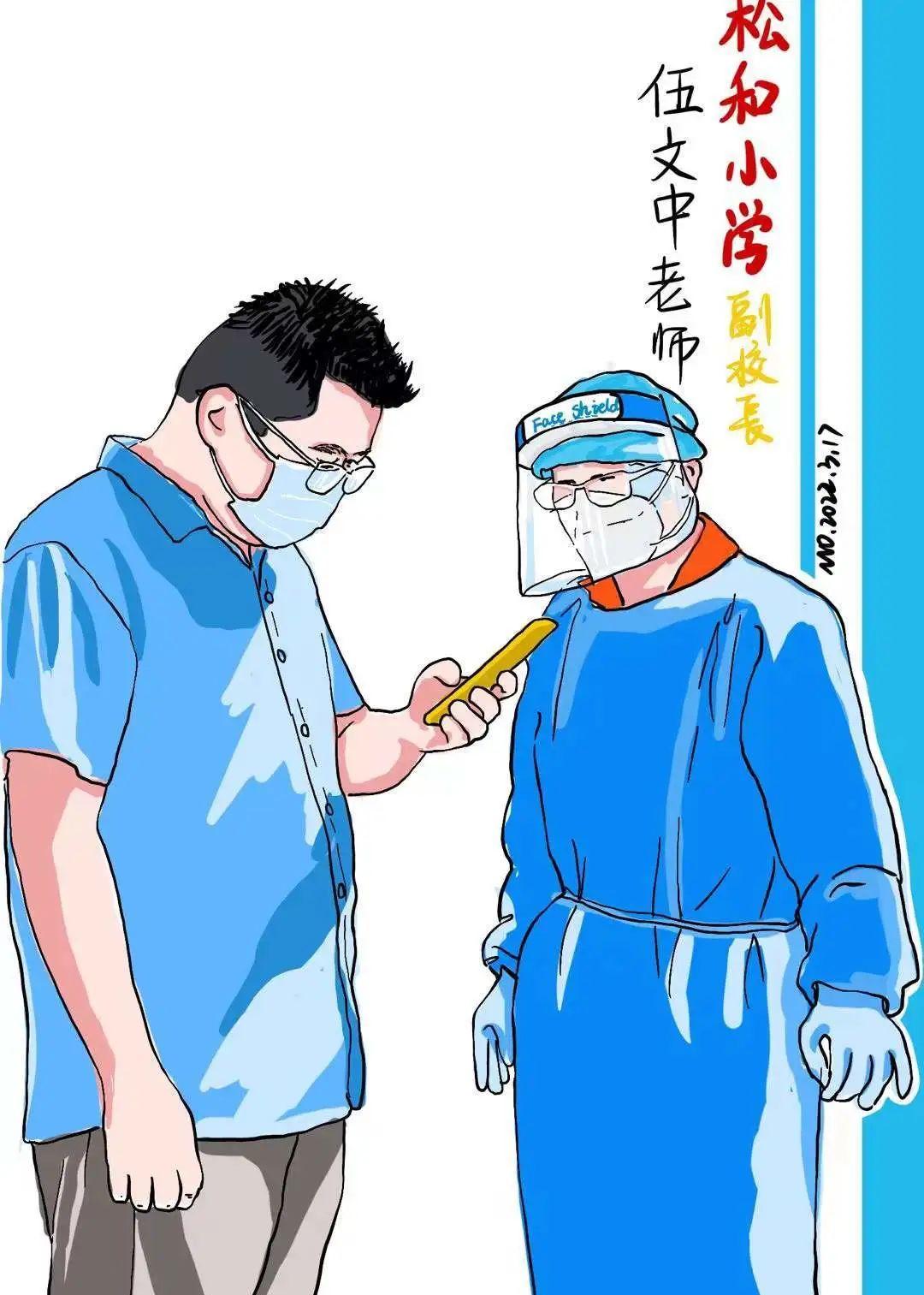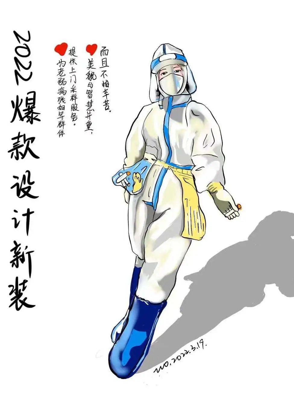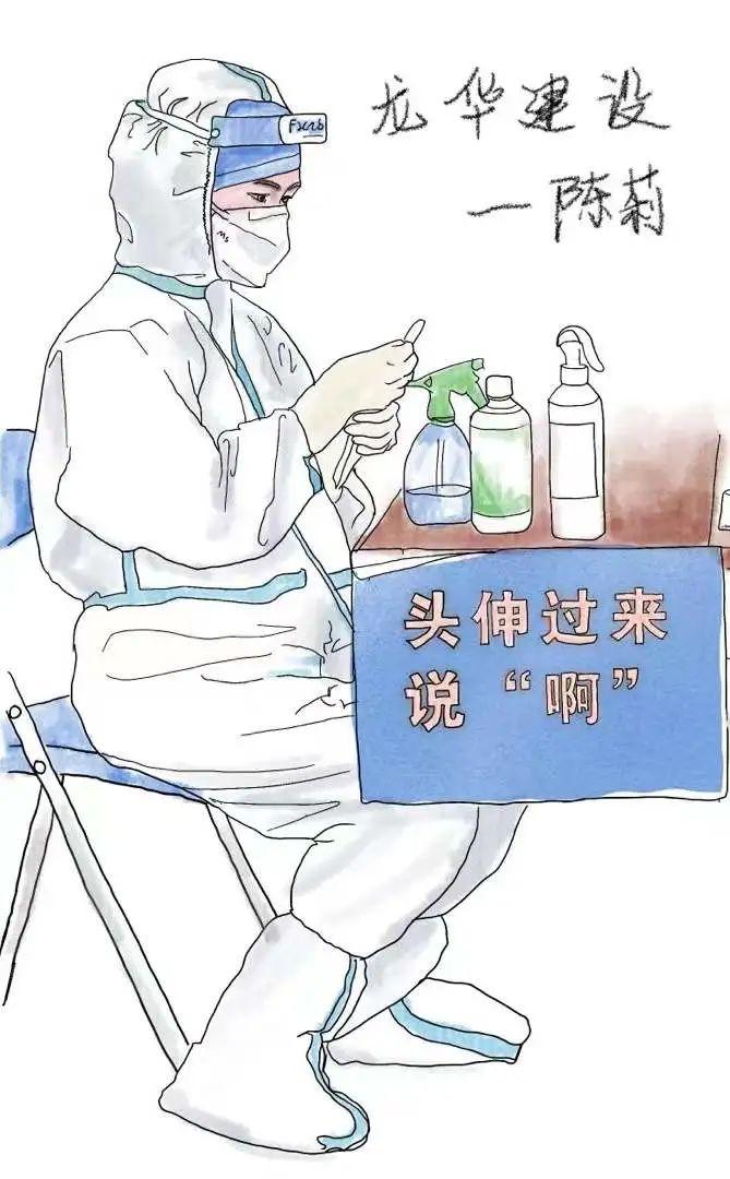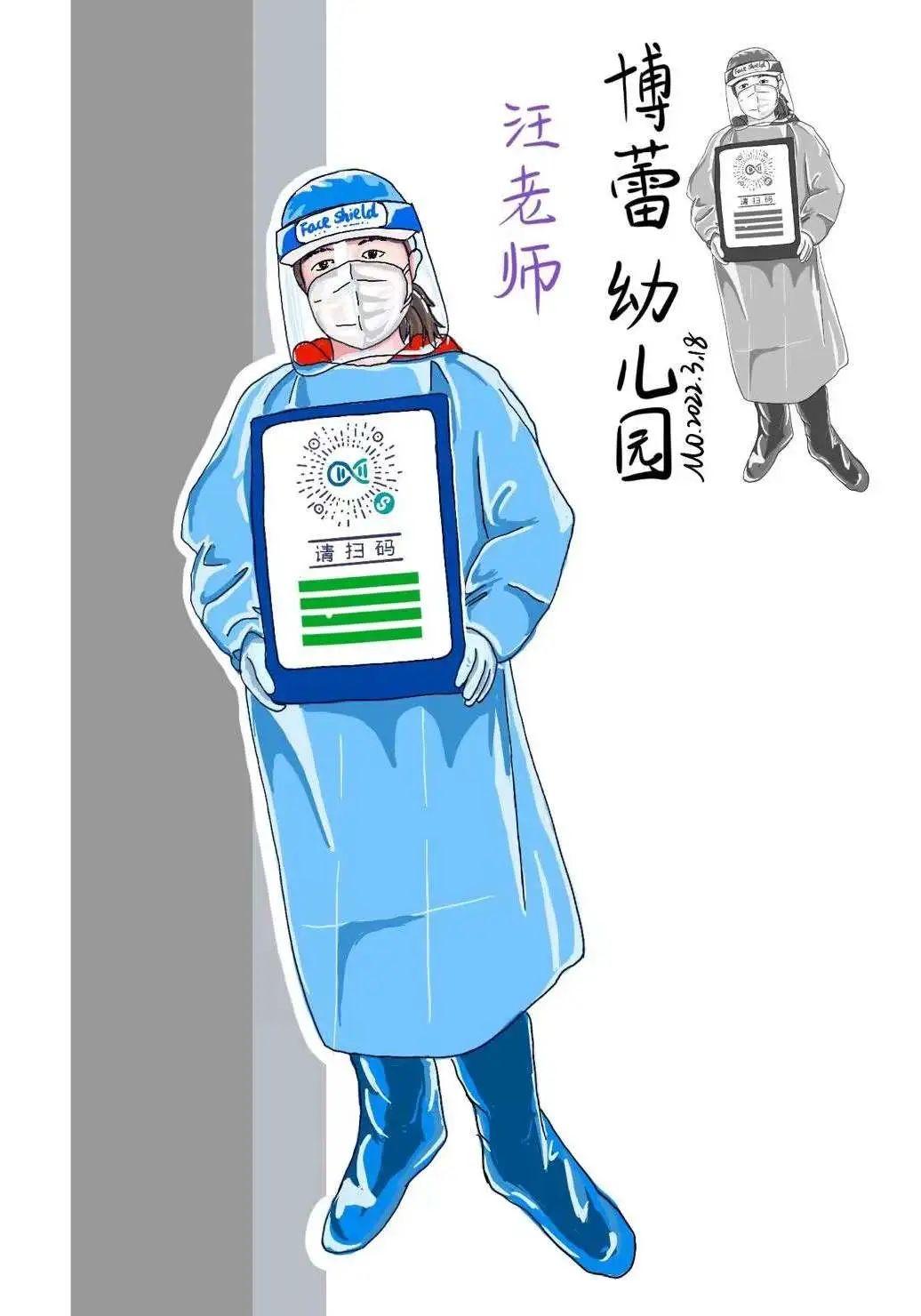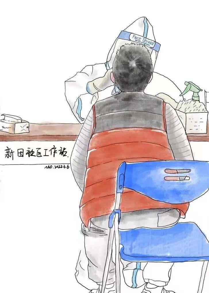“防疫人员太不容易了,是他们给了我们安全的呵护。”第二天,朱月琴便将这张照片用漫画的形式画出来,这也是朱月琴自己最有感触的一幅作品。