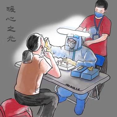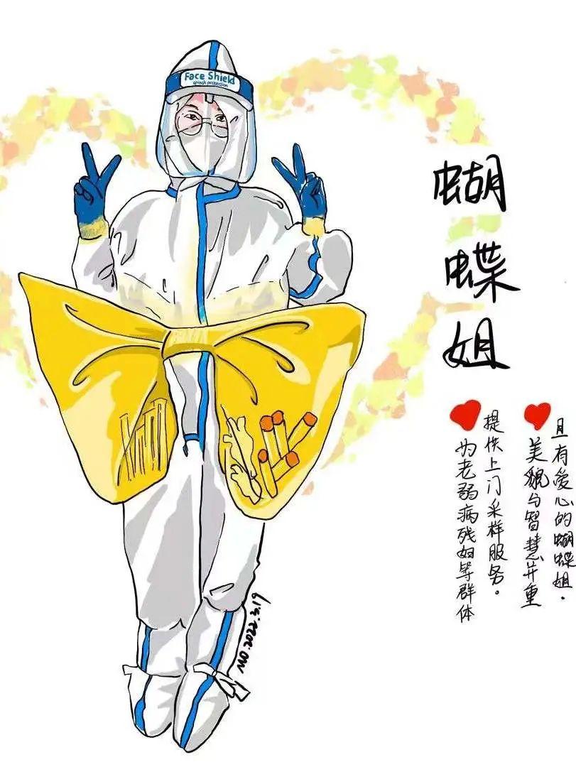 这些漫画作品有的描述了针对老弱病残孕等群体提供上门暖心服务的“黄色蝴蝶结”小分队,他们精神抖擞、手臂高举,提示大家尽快做核酸;