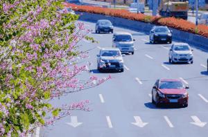 就连道路两旁也满是花开