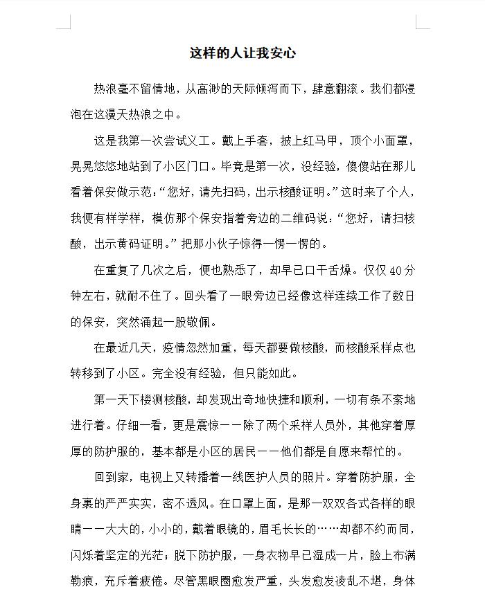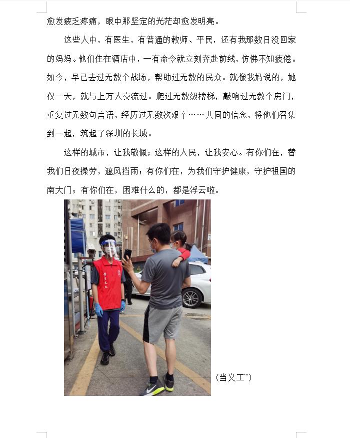 一位罗湖抗疫铁军的宝贝,也亲自体验了一番防疫工作人员的“辛难”,写下了《这样的人让我安心》这篇小作文,字里行间无不流露出着对防疫工作者的敬佩,和对妈妈的骄傲。