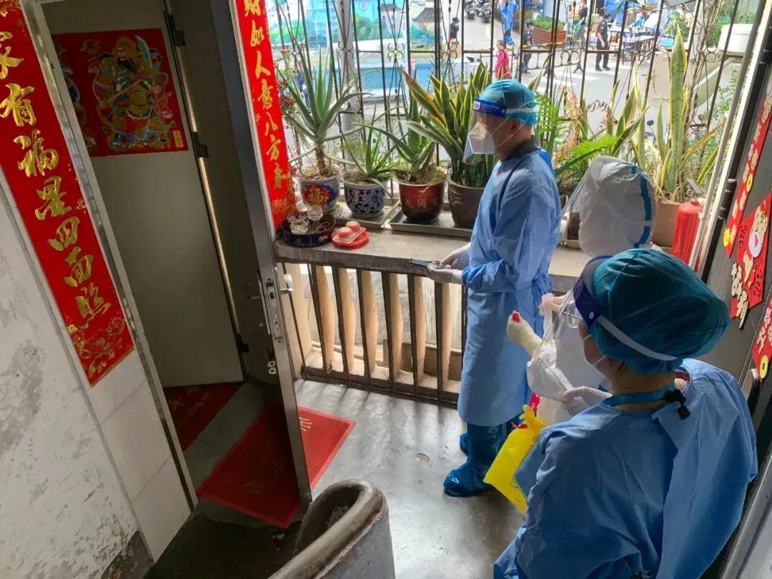 ■ 负责包干执行核酸采样任务的防疫小组则落实全员核酸一条龙服务,小组成员分工明确,全员检测准确高效,并为特殊人员提供上门服务,减少人群聚集风险和居民等候负担,确保“引导—测温—扫码—采样—登记”每一个环节做到井然有序、片区覆盖、应采尽采。