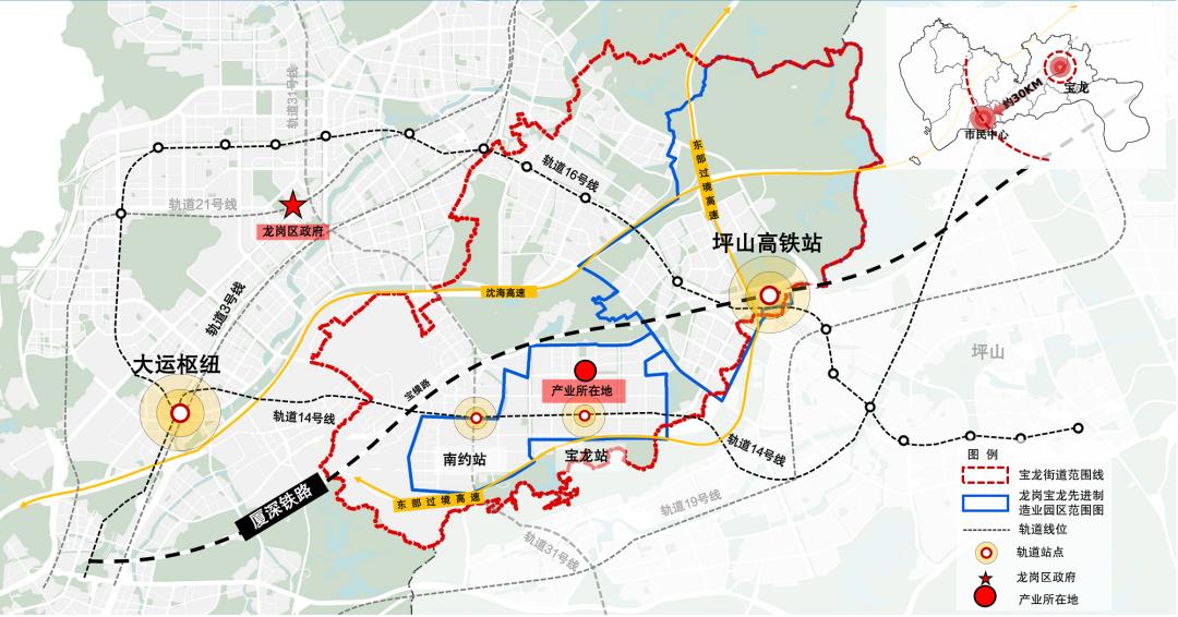 该项目位于龙岗区宝龙街道宝龙科技城,属于深圳市20大先进制造业园区之一的龙岗东先进制造业园区核心地带,建设用地面积8.84万平方米,计容总建筑面积40.04万平方米,其中高端制造业厂房34.16万平方米、工业配套3.16万平方米、酒店及商业等公共配套2.72万平方米,计划2023年12月底前建成使用,预计总投资超过25亿元。