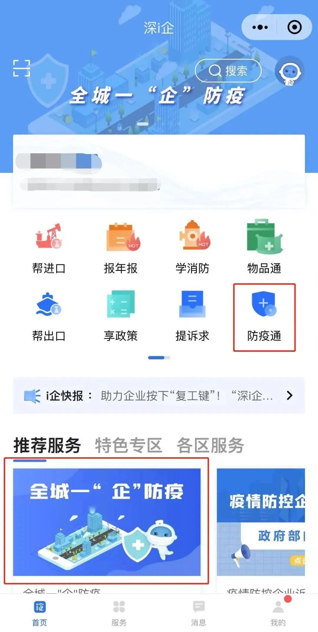 方式二:在首页【推荐服务】【全城一“企”防疫】进入