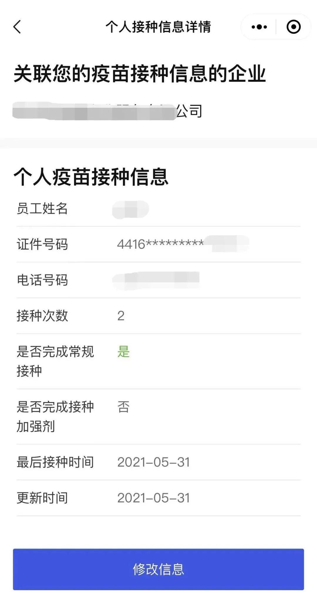 点击“个人疫苗接种信息核查”进入页面,查看个人疫苗接种信息,自主核对、纠正信息。