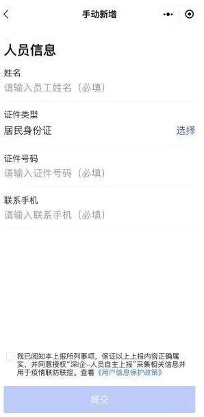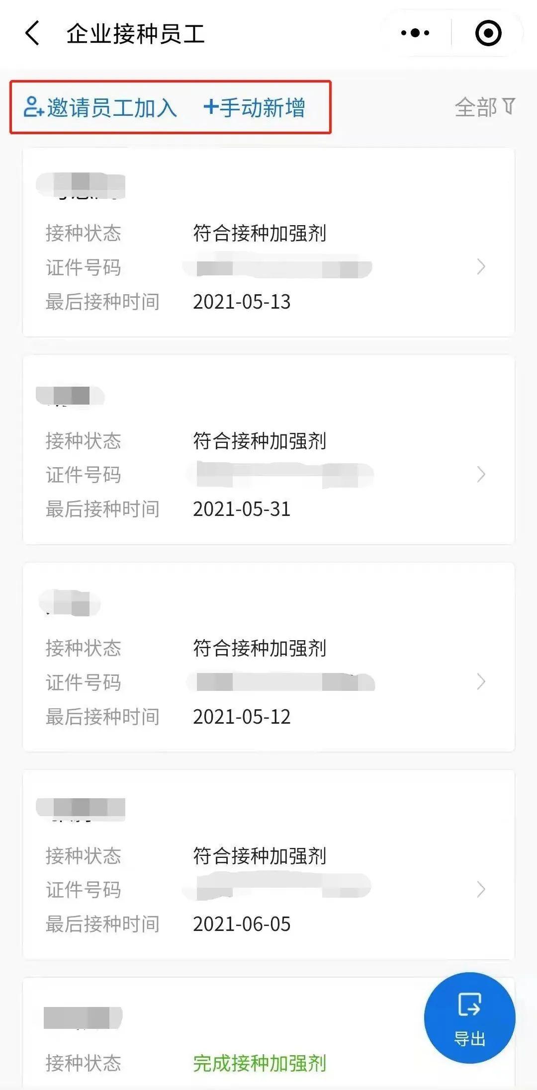 可点击【查看疫苗接种明细】,如需增加员工,点击【邀请员工加入】或【手动新增】添加员工,填写姓名、证件类型、证件号码、联系电话等信息,并点击【提交】。