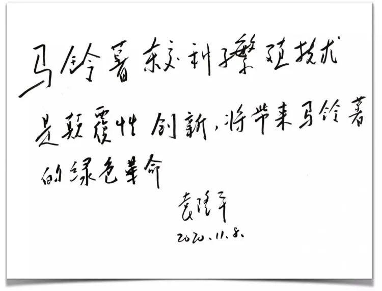 ▲袁隆平院士为“优薯计划”题词