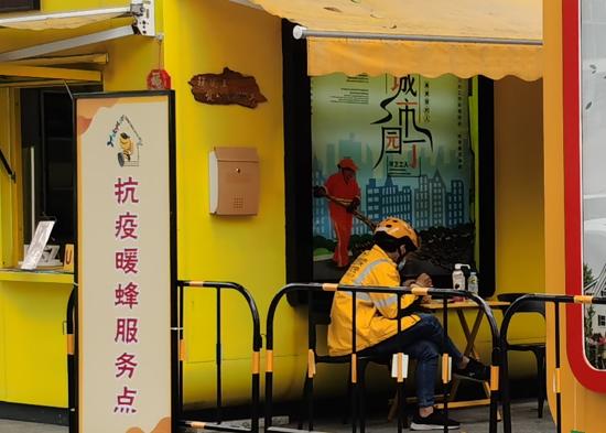 驿站和服务点由街道专人专班落实,采取2人一班24小时值守的方式,做好相应的暖心服务工作,如外卖骑手的信息登记、扫码、测温、物资发放、诉求解决等。暖蜂服务点开放以来,共接待外卖骑手261人次,发放泡面、面包423余份、矿泉水316支、防疫中药包130余份。在湿地公园设置骑手核酸采样点,累计采样980余人次。