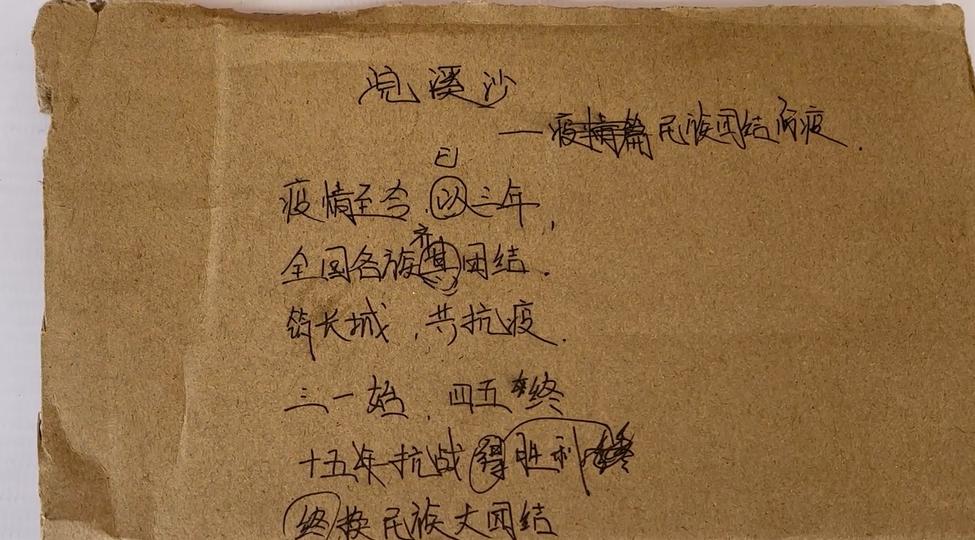 来自河北保定的刘竞泽是一名退伍特种兵,今年3月来到深圳,目前在前海湾花园负责日常巡逻和防疫物资调配工作。立春后,深圳的天气开始变得炎热。临近午饭时间,前海湾花园仍是一副繁忙的景象,“大白”们在岗位上各司其责。“我曾穿过一次‘大白’,里面那种密不透风的感觉让我很难受,难以想象医护人员是如何坚持下来的。”刘竞泽见此情此景,内心深受触动,他随手从物资纸箱掰下一块纸板,随手写下了一首打油诗。“共愿疫情,早覆灭。”一名退伍军人在诗中抒发了自己的赤子之心。