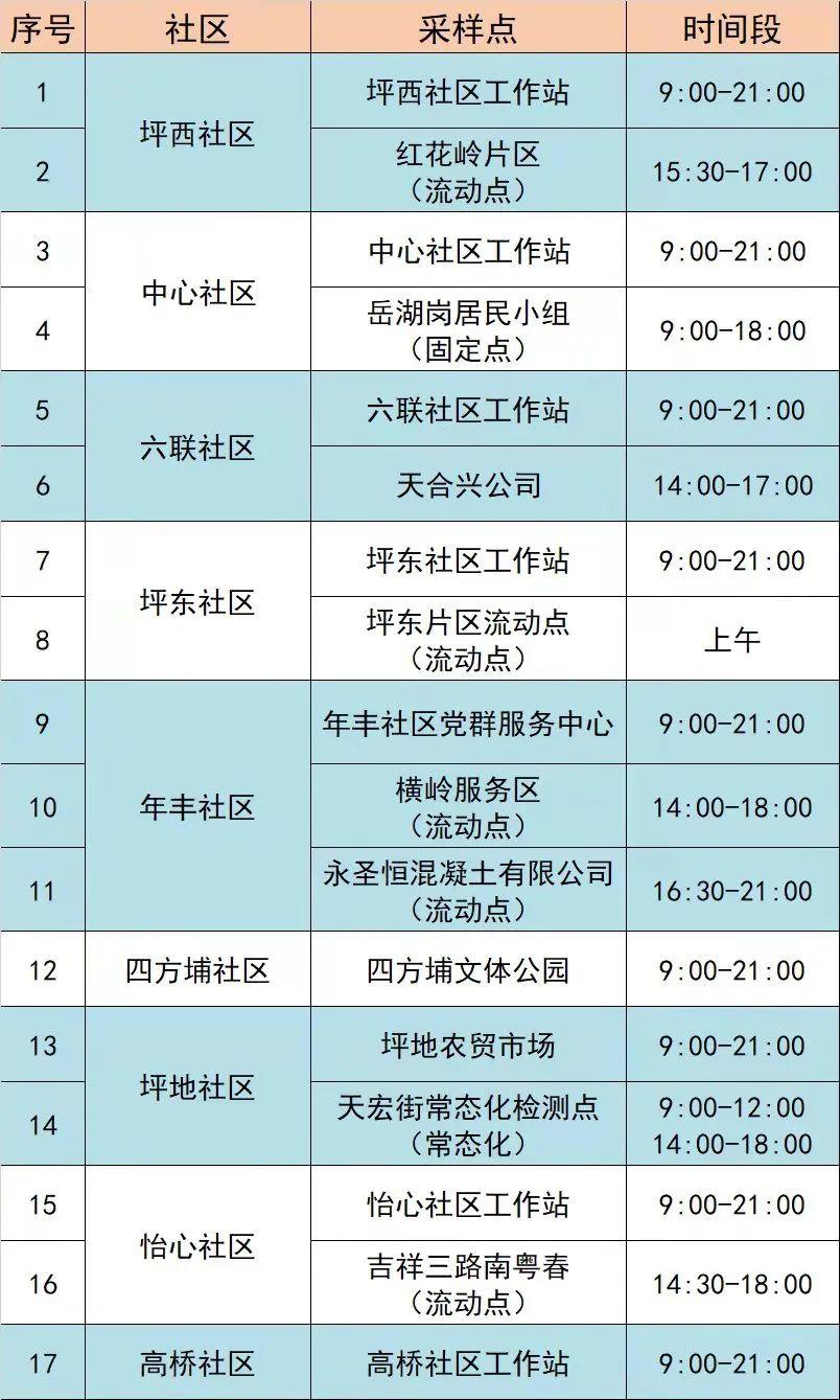 坪地街道设有18个核酸采样点