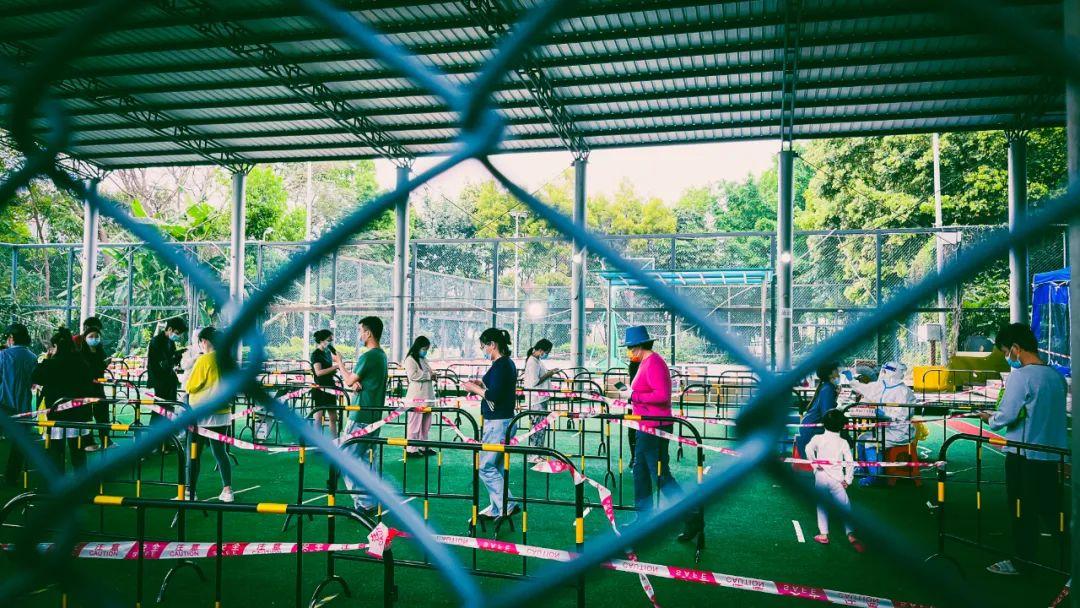 3月20日拍摄于布吉国展社区国展苑门球场核酸检测点。大家排队做核酸,有序遵守着“一米距”的规定。为了抗击疫情,每一个普通人都在努力。