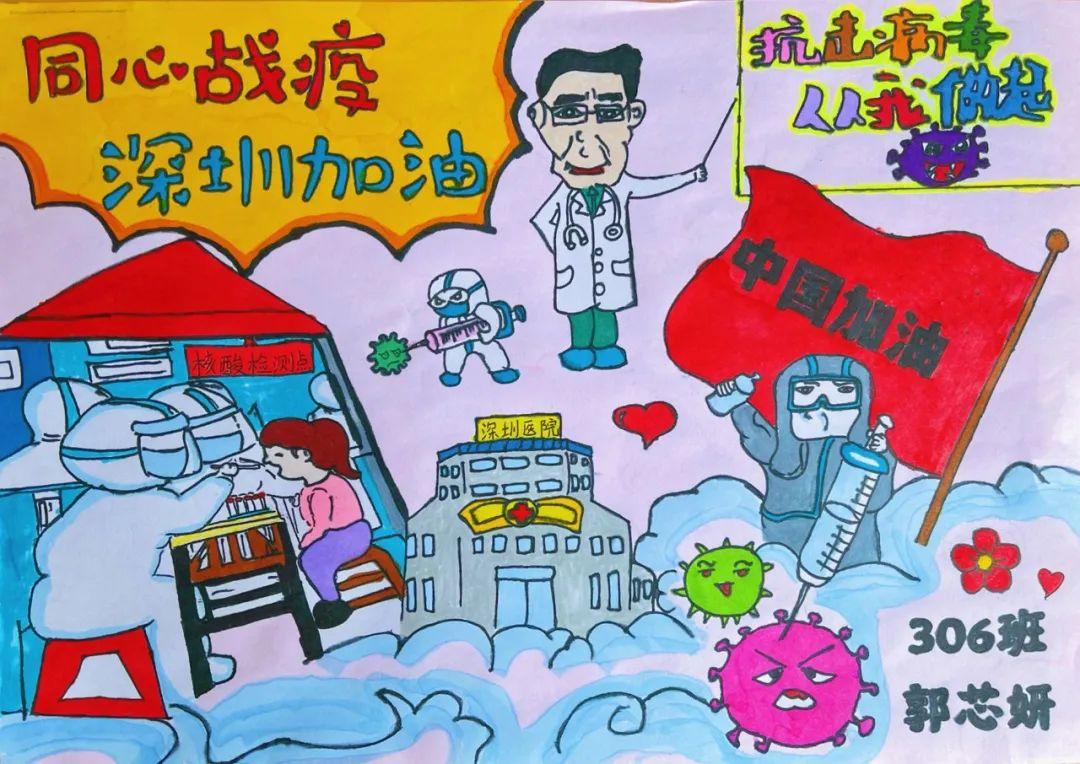 每次出门时,妈妈都叮嘱我们要戴好口罩。看着楼下小朋友的口罩都是五颜六色、各式各样的,我也想自己创作一个独一无二的口罩,一起来为中国、为深圳加油!希望疫情赶紧结束,大家平安健康!