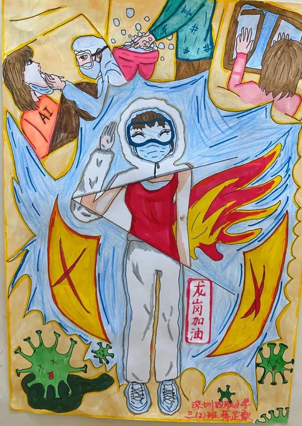 和家人一起做核酸时,看到防疫工作人员在大热天里默默付出,很是辛苦,被他们感动了。回到家我画了这幅《龙岗加油》,希望提醒大家都做好日常防护,管理好自己的健康,众志成城,一起打败疫情。