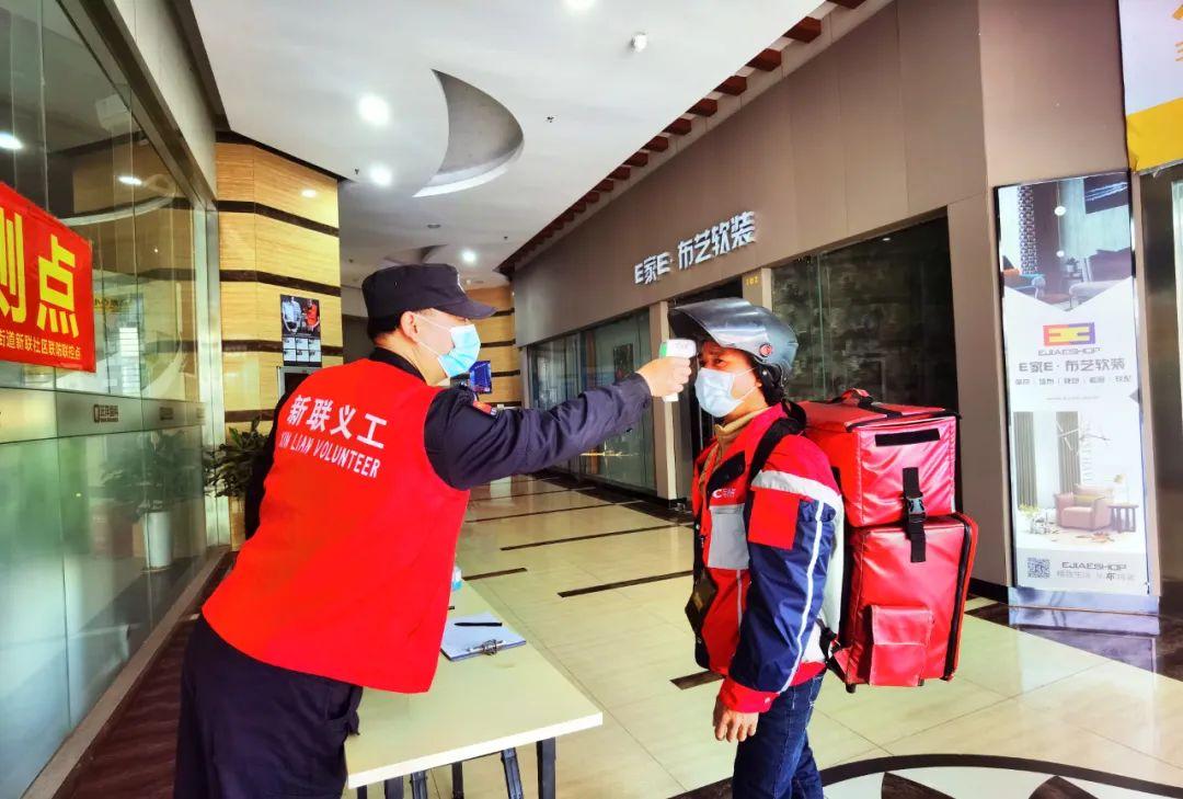 照片拍摄于龙岗区龙城街道爱联股份大厦。工作人员对进入大厦的人员进行体温检测、扫码登记,大家都在认真配合防疫工作,守护着战“疫”防线。