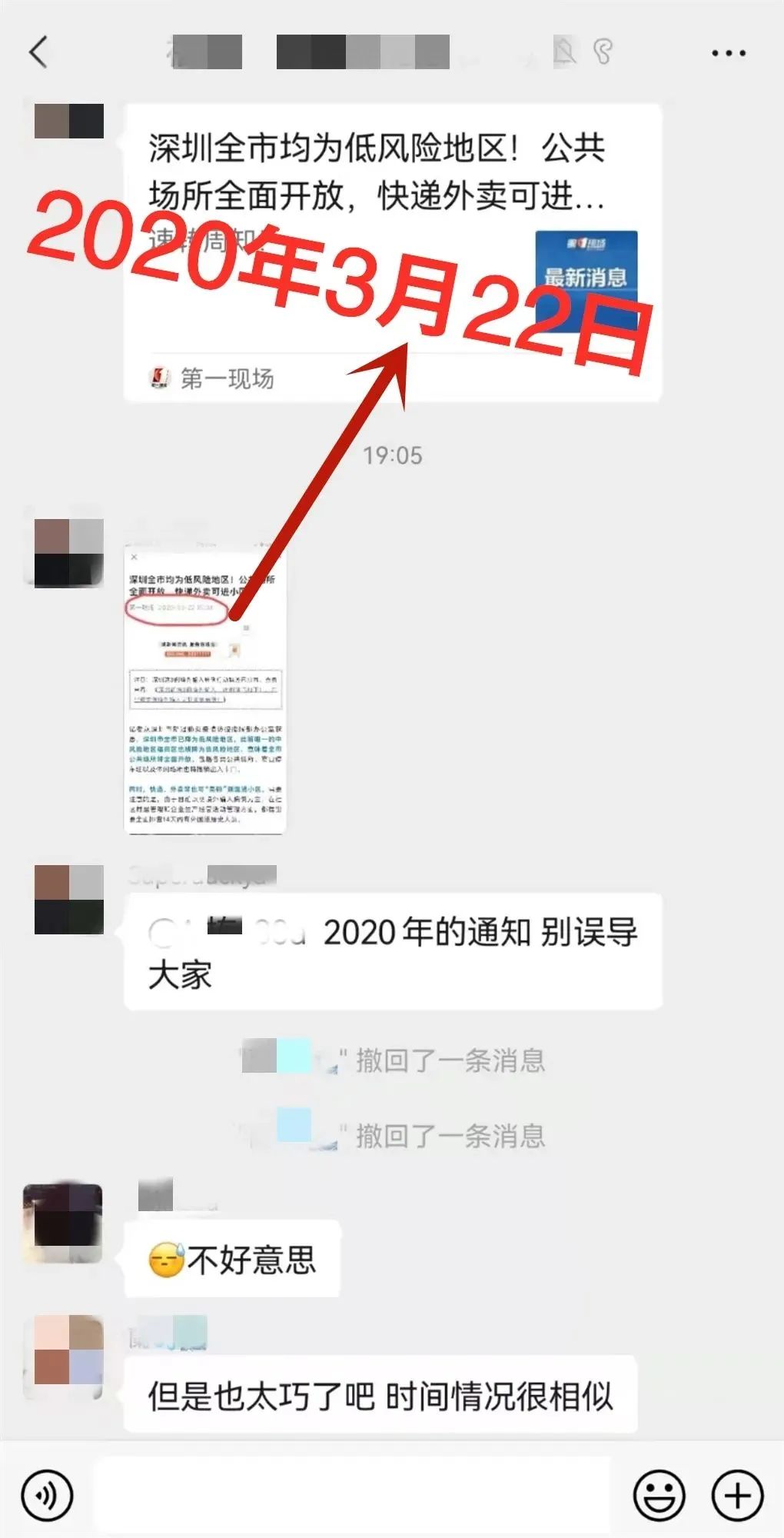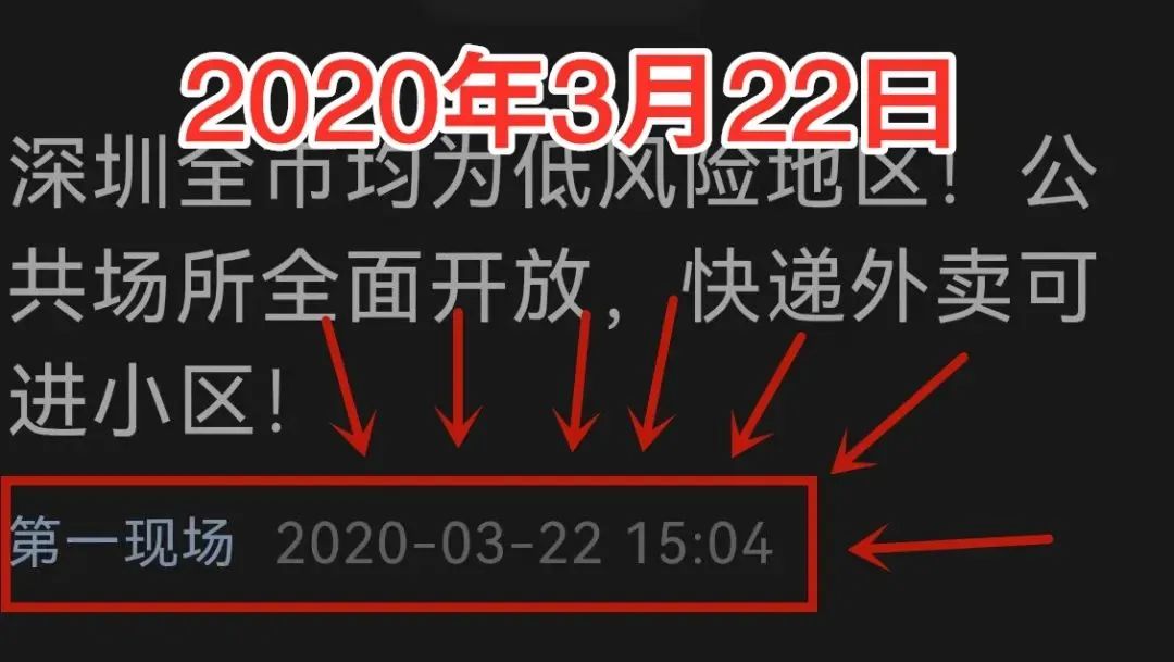 昨日,深圳有部分业主群及部分市民朋友圈热传一条来源为《第一现场》公众号的推文。据《第一现场》公众号辟谣,该新闻为两年前的新闻,发出时间为2020年3月22日。请广大群众不信谣,不传谣。