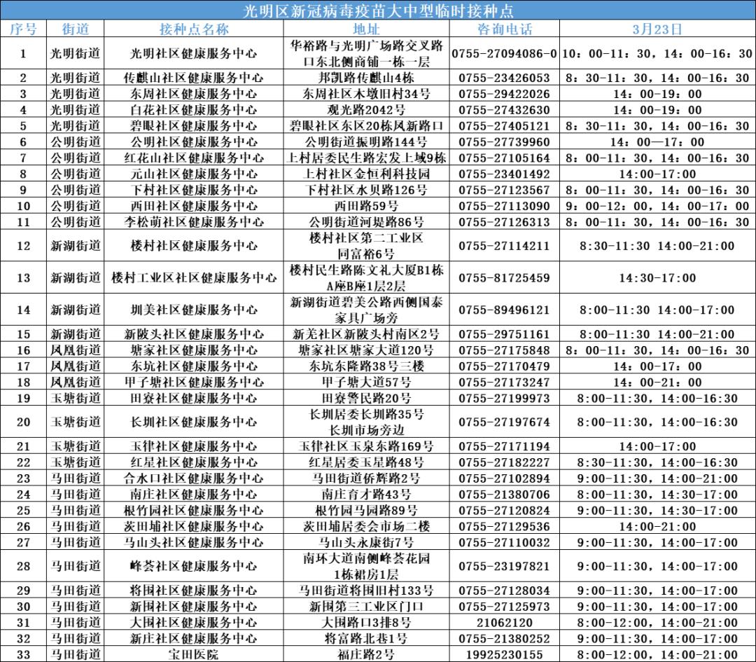 除了光明区的疫苗接种点