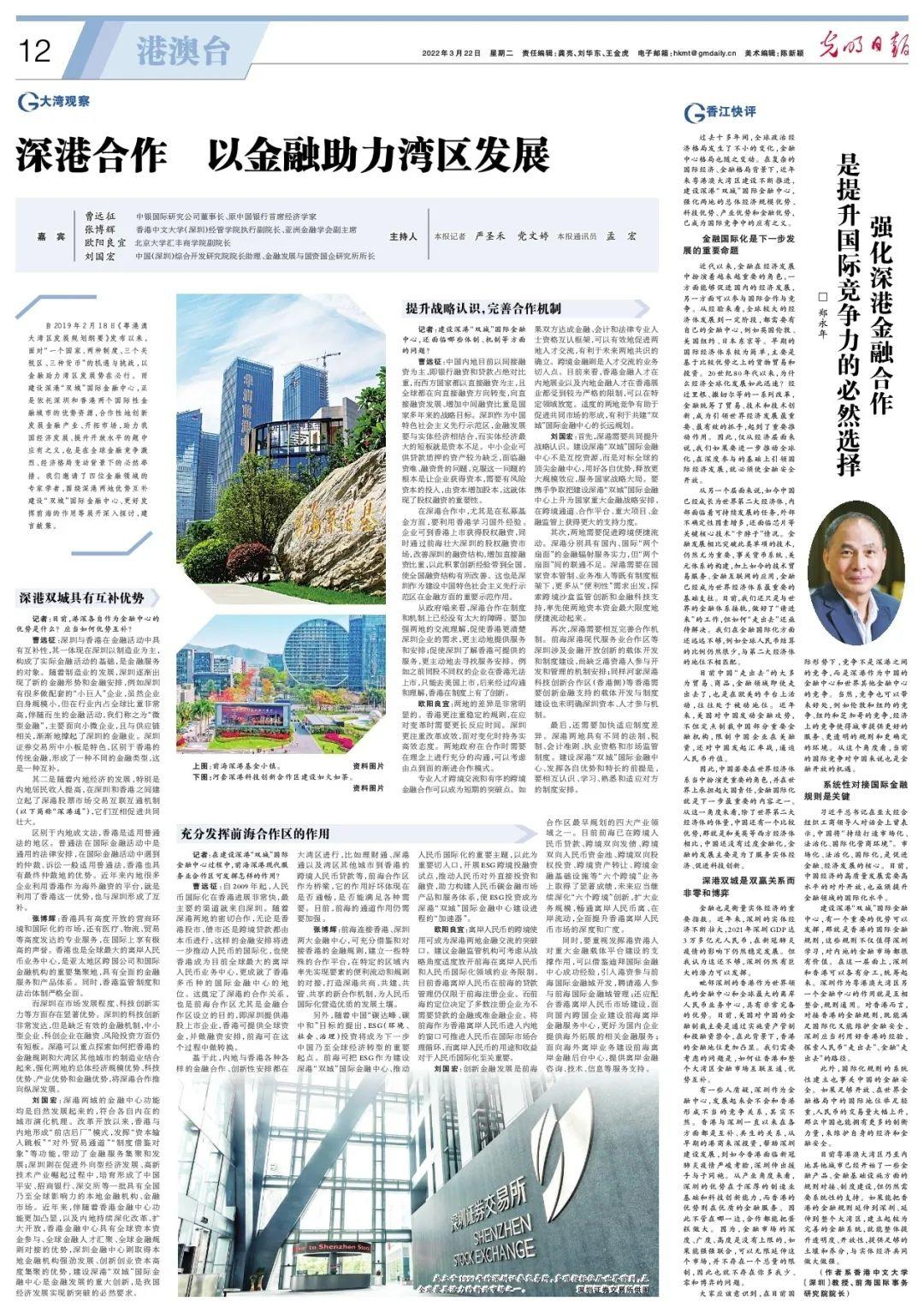 张博辉:前海连接香港、深圳两大金融中心,可充分借鉴和对接香港的金融规则,建立一些特殊的合作平台,在特定的区域内率先实现要素的便利流动和规则的对接,打造深港共商、共建、共管、共享的新合作机制,为人民币国际化营造优质的发展土壤。