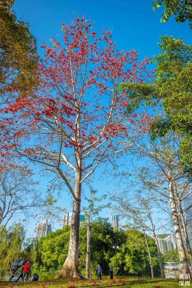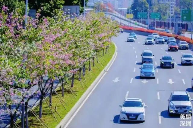 滨河大道的宫粉紫荆和车水马龙相互映衬;莲花北路中间的洋红风铃木,同样热情绽放;处处开放的木棉花,仿佛在感谢为这座城默默付出的每一位无名英雄。