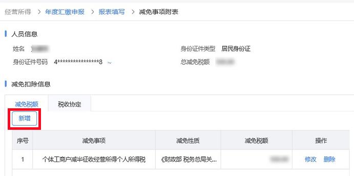 (4)纳税人发生减免税事项,在主表减免税额字段后,点击【编辑】进行减免附表的填写,点击【新增】减免税额明细数据。