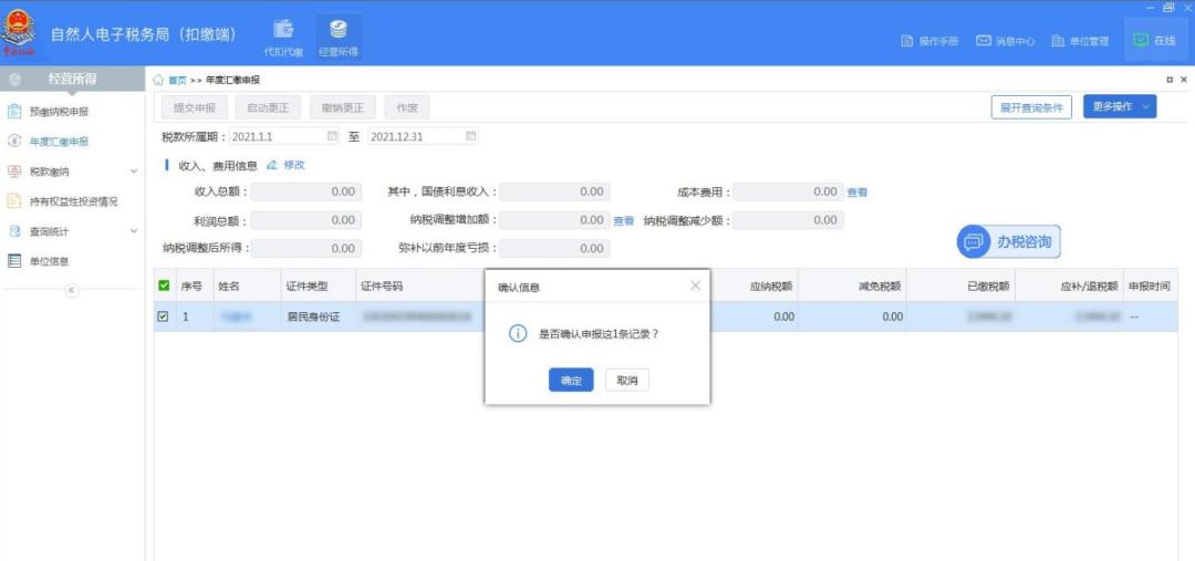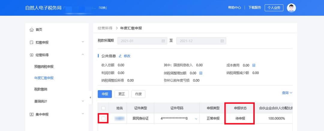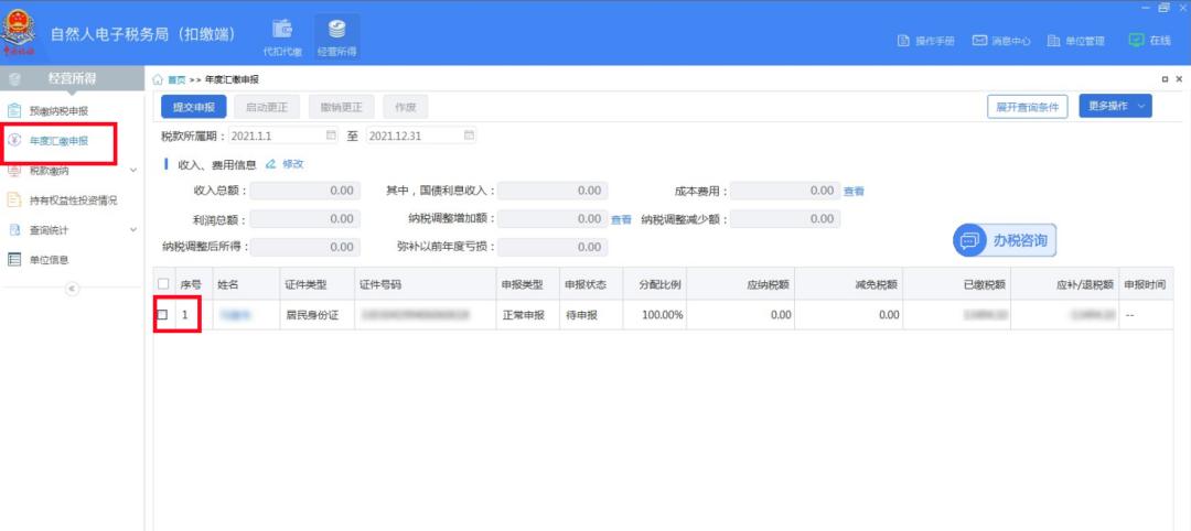 自然人电子税务局(WEB端)——自行办理年度汇总申报