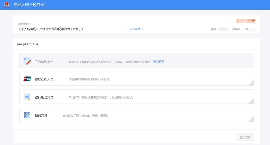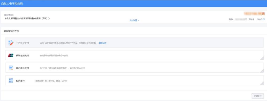 若需补交税款,从左侧【税款缴纳】进入缴款页面,提供4种缴款方式: