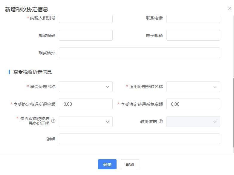 (5)纳税人享受税收协定待遇的,在税收协定标签页,点击【录入税收协定信息】。