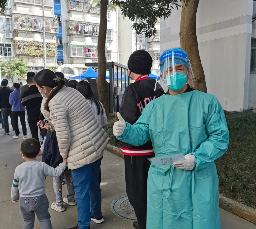 “印象最深的还是晚上十二点多和医务人员去上沙东村给居民进行核酸采样。本以为居民们会很抗拒半夜敲门,但他们都出奇地配合,打开房门采样完毕后还会不停地向我们道谢。一声‘辛苦啦’让我觉得所有的努力都值得,相信在大家的共同努力下,我们很快就能赢得这场战“疫”的胜利。” 朱宇峰表示。