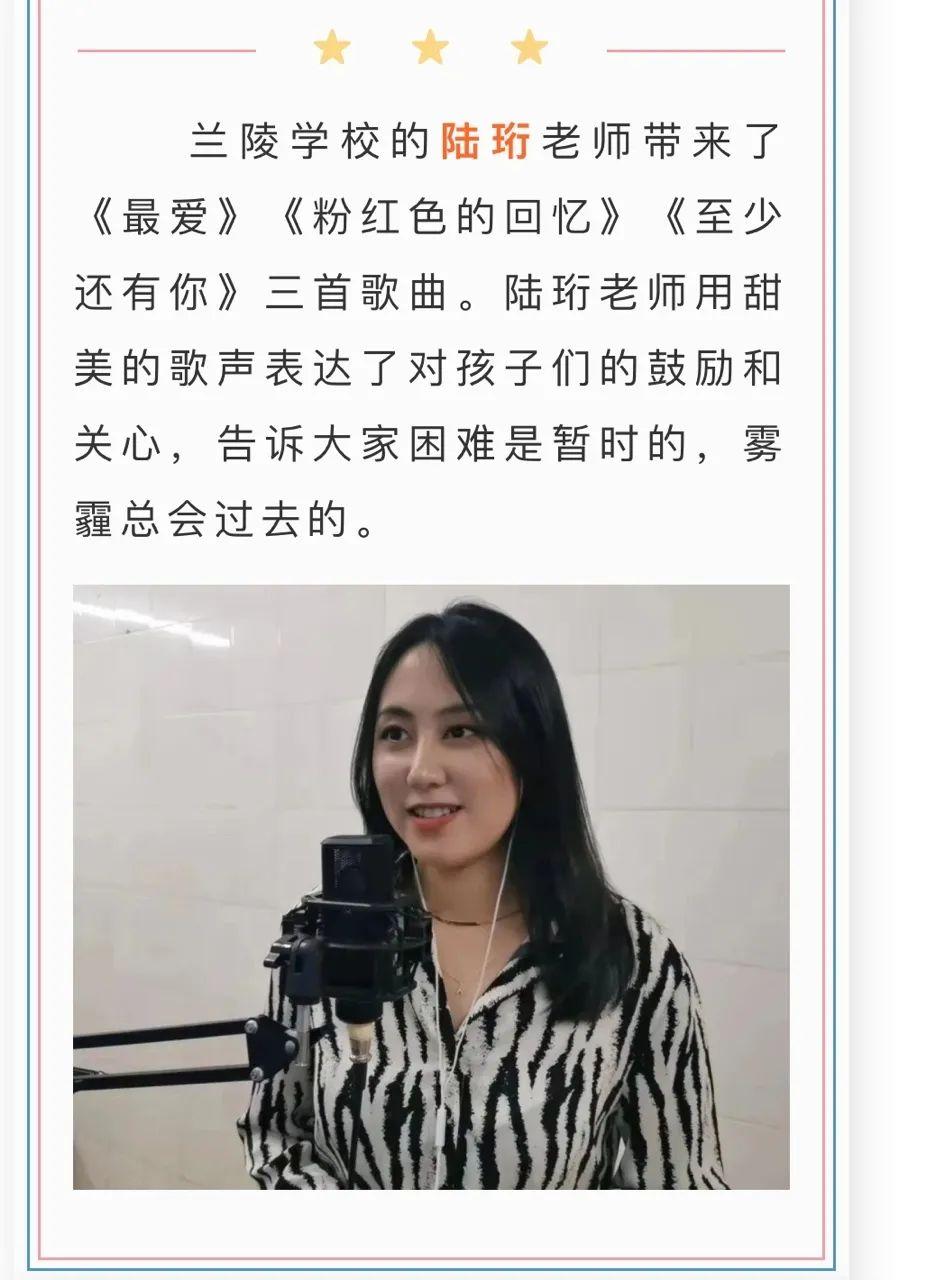 以艺抗“疫”,我们也可以。居家期间,兰陵学校还开展了各种形式的艺展活动,如德育处组织的教师厨艺秀、同学们的舞蹈、歌曲、插花栽花、绘画等等,展示了兰陵师生风采,灿烂而又夺目,为温暖的三月洒下一路星光,光芒万丈。