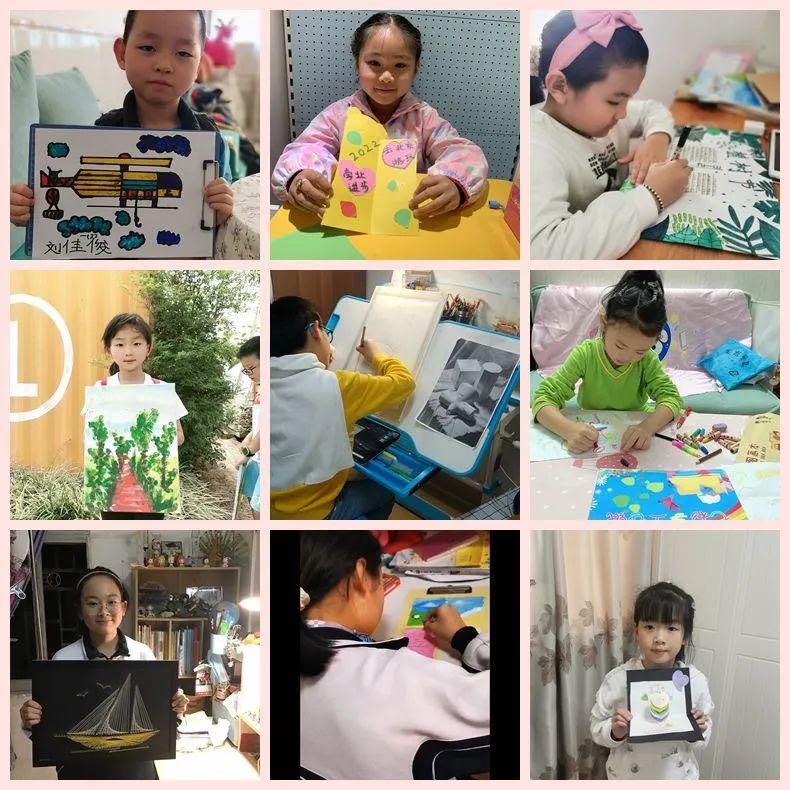 同学们呢,则是通过视频录制、文字记录、绘画等方式记录妙趣横生的网络课程,以积极乐观的心态参与网络课程学习,参加云端互动,可谓是同行云端,精彩依然。