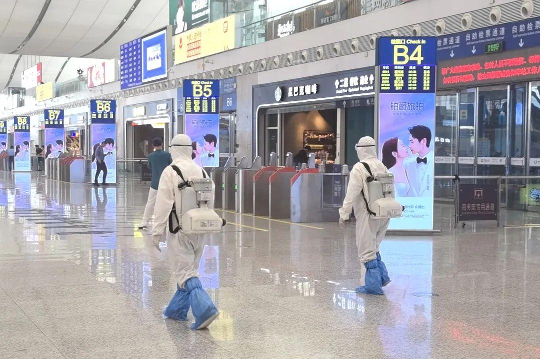 为保障旅客安全健康出行,铁路部门严格落实市疫情防控要求,加大站场通风换气,针对候车室、进出站口、检票口、站台等重点区域,开展定时、定点、无死角消杀。