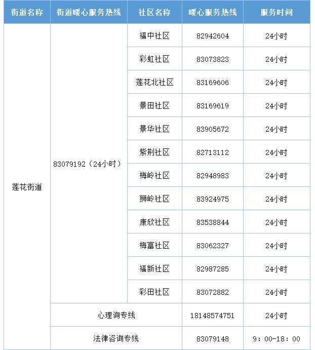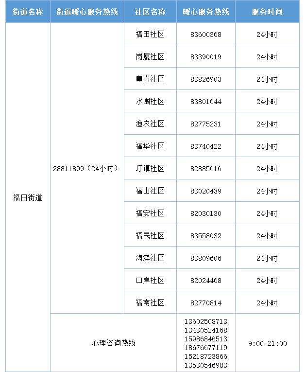 福田区暖心服务热线一览