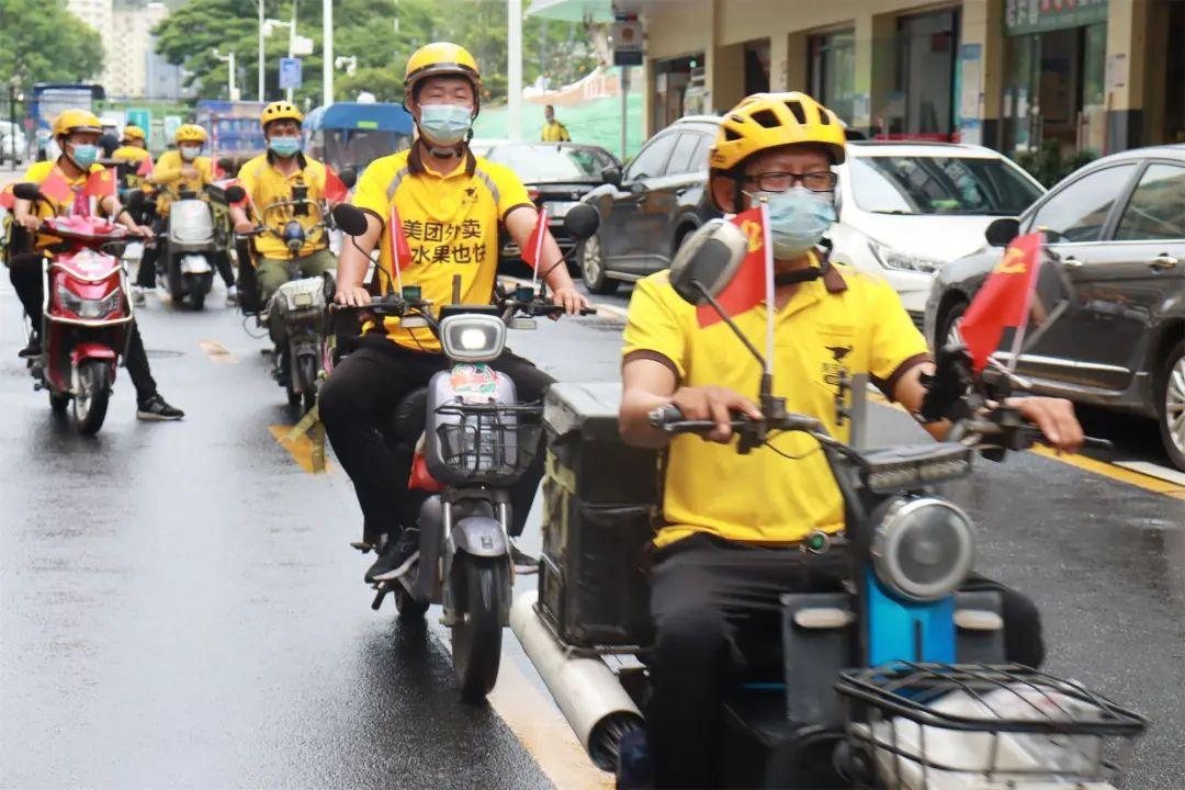 上周,陈伟感觉较往常更忙碌了。在陈伟所在的配送站中,他是一支27名外卖骑手队伍的领队,他们以配送点为起点,配送范围直径约为10公里,覆盖福城街道、观澜街道部分社区,用比往常更迅疾的脚步奔波在配送的“最后一公里”。