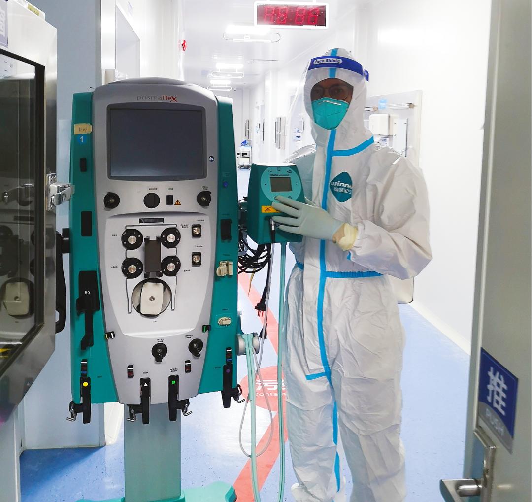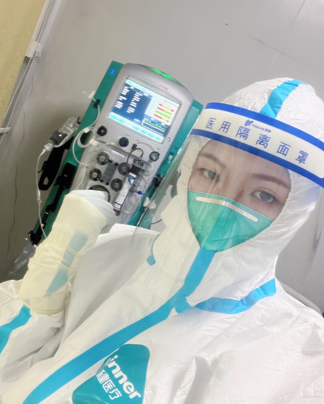 护士是床旁CRRT治疗绝对的主力军,是医疗任务的最终执行者。刘映珊护士长带领护理团队在感染性疾病科-负压病房开辟了“透析阵地”,从不熟悉布局到熟练进出、规范进出;标准防护、机器消毒,文件及药物传送、专人专机治疗等都探索出完整规范的流程。