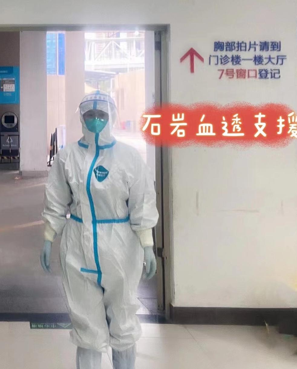 虽然去之前做好了心理准备,但是到了现场她们才体会到条件比想象的艰苦:对新开辟的治疗区场地不熟悉、流程不熟悉、同事不熟悉;疫情期间各方流转对接较平时难度更大;她们穿上闷热的防护服等了几个小时,患者却迟迟没有送达,还没开始帮患者治疗,她们自己已是汗涔涔湿了衣衫;住的地方没有高床软枕,只有值班房的架子硬床,而且是多人宿舍,大家各有各的习惯,她们几乎夜夜难以入眠。即便如此,两位护士姑娘没有退缩。患者来了,她们以专业的态度和娴熟的护理技术,高质量地完成床旁透析治疗。短短十几个日夜,她们收获了石岩同事和病人的大量好评。