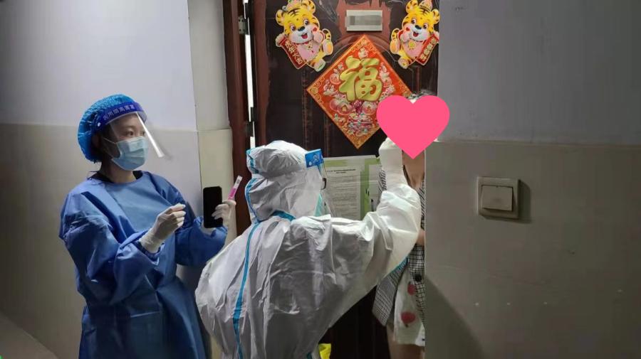 竹坑社区聚龙花园一期核酸检测点,一位男士匆匆跑来告诉社区工作人员,他的妻子正在坐月子不方便出门,需要医护人员上门帮忙采样。检测点负责人了解情况后,立即协调医护人员和社区工作人员一起上门为其做核酸检测。