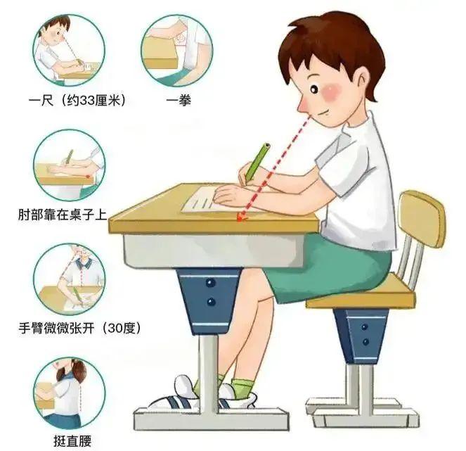 还要特别强调一下“不偏头”,长期偏头看书、写作业,易引发单眼近视,家长和小朋友们都应特别注意。