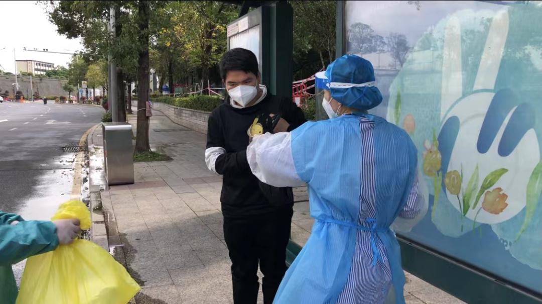 让我非常感动的,是一位特殊的社区居民,在自己行动不便的情况下仍坚持出门做核酸。因为他是半身不遂的,将近十年都没有出过家门,但为了全力配合防疫工作,要求家人带他出来测核酸,他说,家里人要应检尽检,不漏一人。